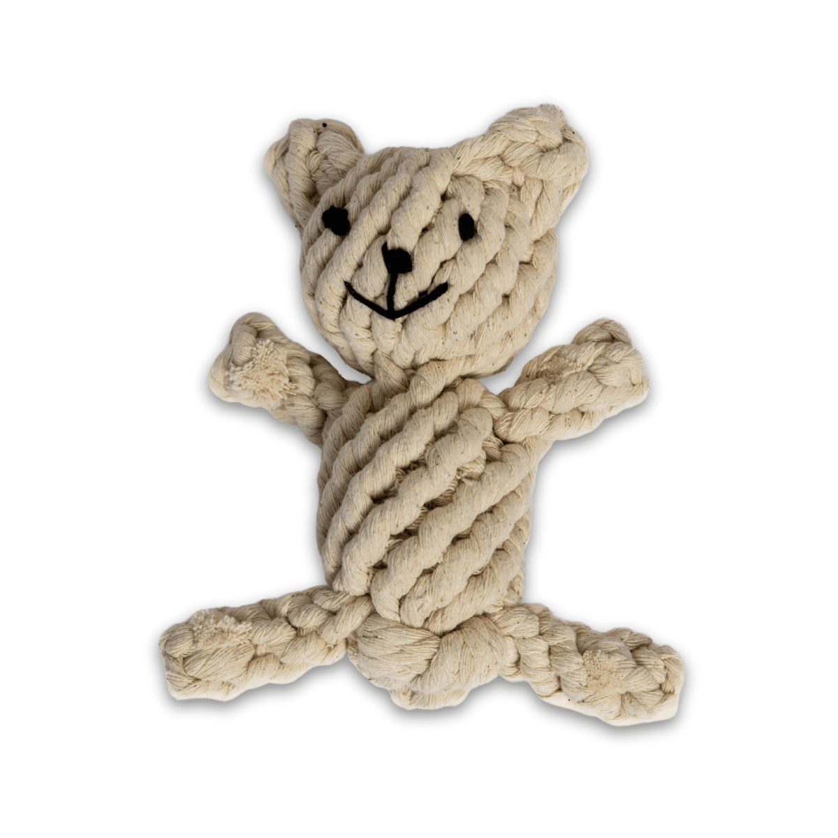 Meet the Rope Bear – a sturdy, tightly-woven cotton toy designed to satisfy dogs who love to tug, shake and chew.